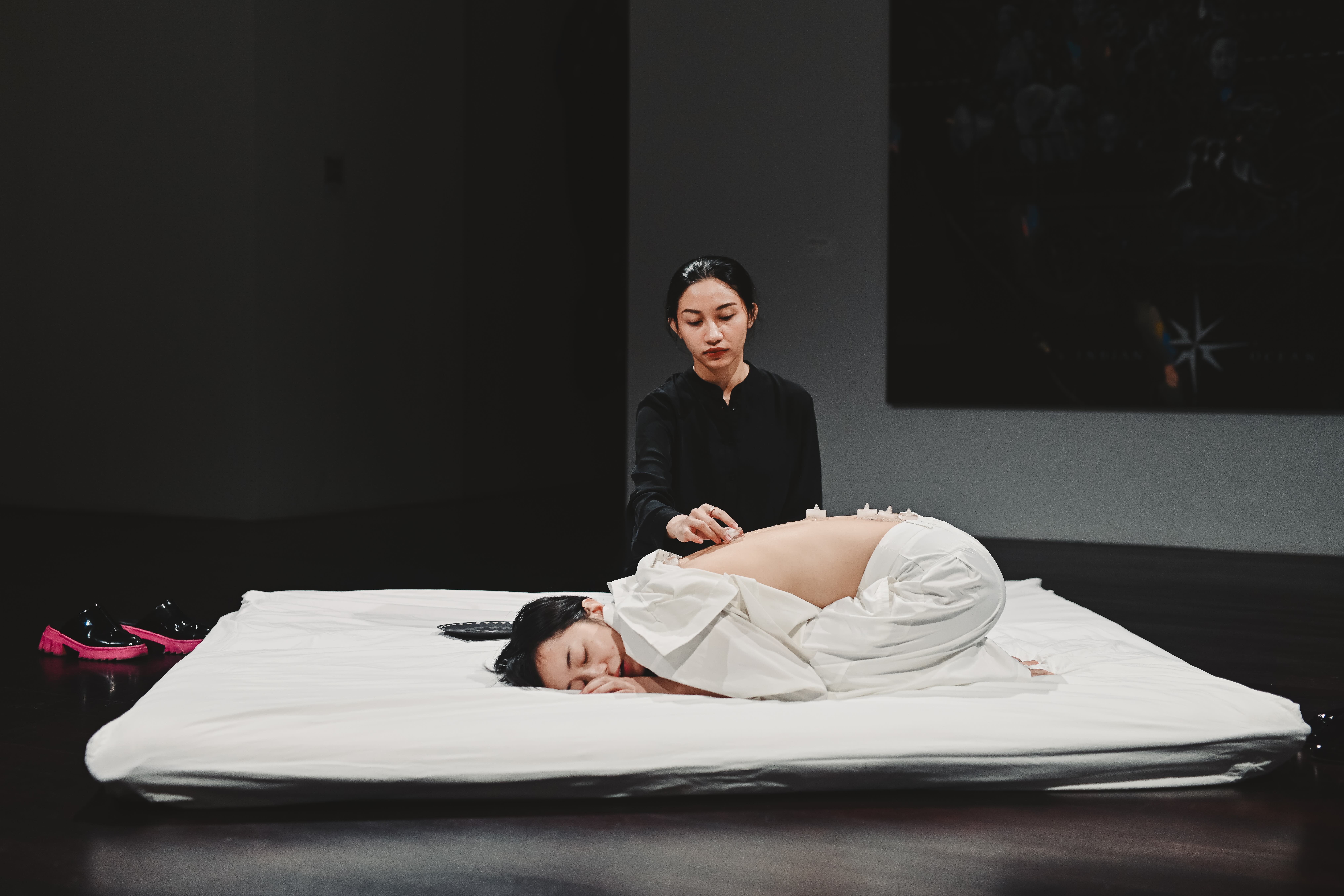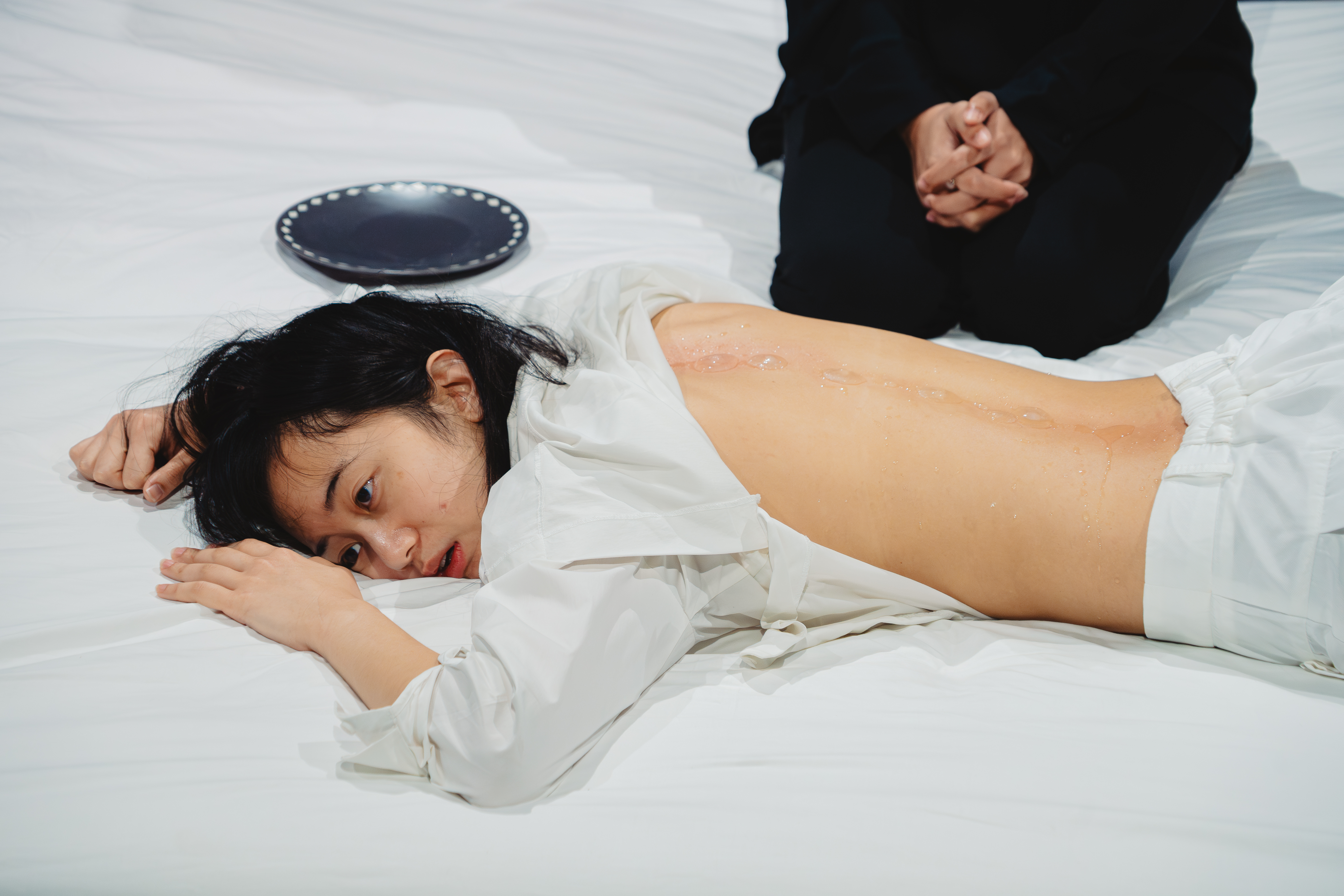 Pietà is a durational performance by that explores the body as a living vessel for guilt, sin, trauma, and memory. Kosasie, together with another performer, reenacts a quiet, devotional tableau: Kosasie embodying the altar, while the other assumes the role of caretaker or supplicant.